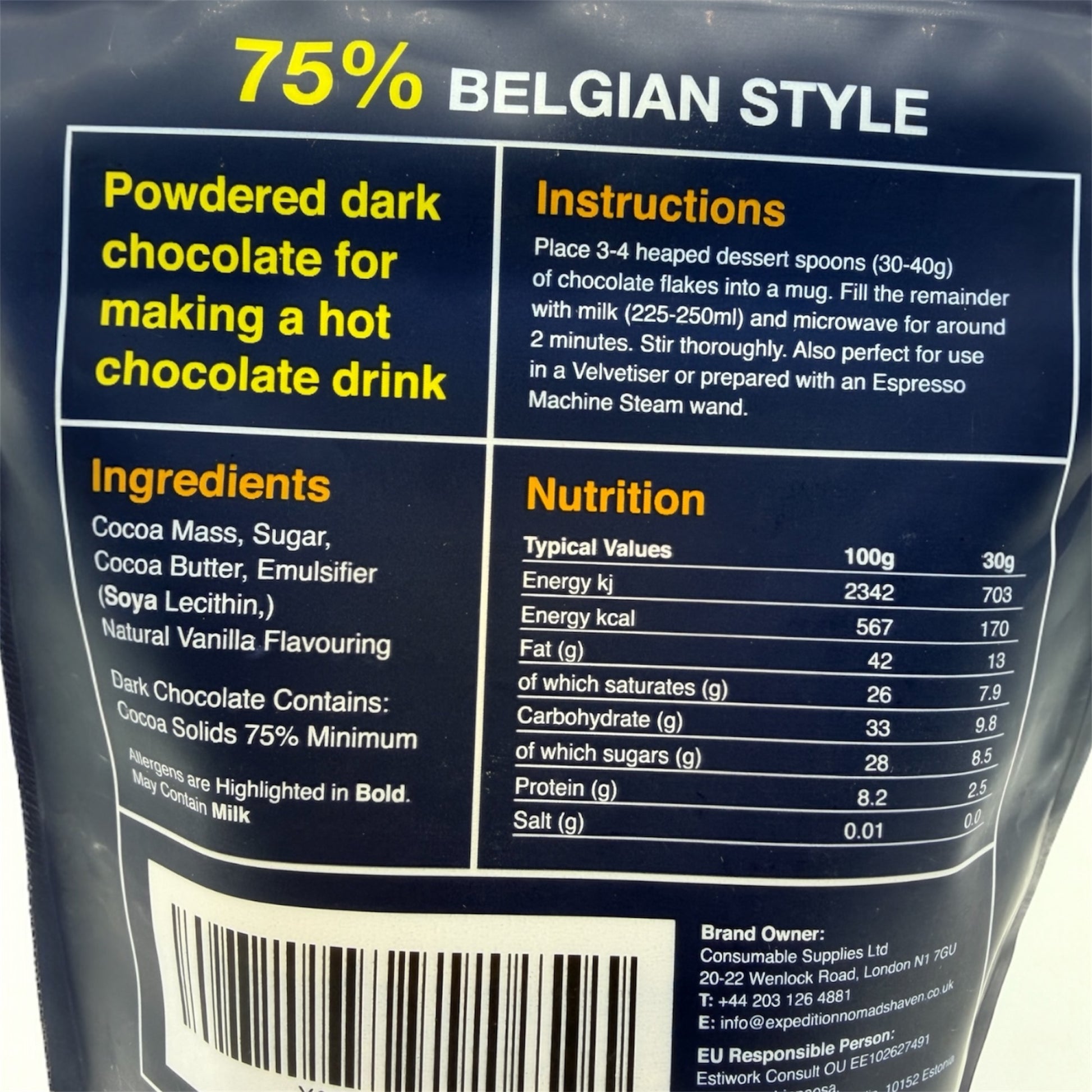 Luxury Hot Chocolate - Real 75% Belgian Chocolate Flakes - 500g